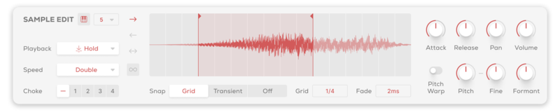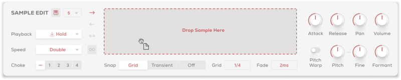 - Sample Crossfade, Attack, Release, Pan, Volume