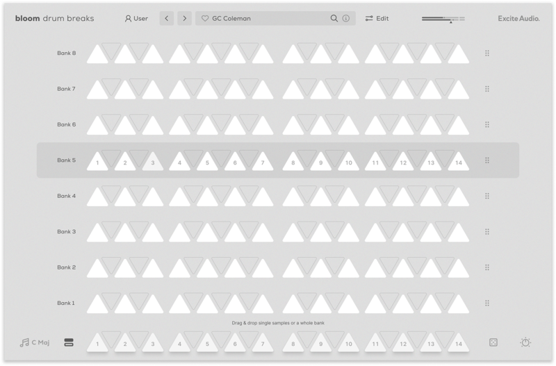 Bloom Drum Breaks fuses high-energy drum loops, fills and one-shots into a dynamic and playable instrument, made to infuse your tracks with rhythmic vitality and designed to provide for genres that thrive on rhythm.