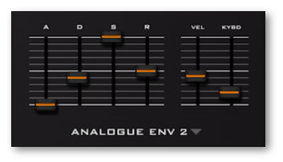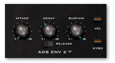 Two envelopes, one for the output amp and the other general-purpose. Again, there is a choice of several different models based on classic hardware synthesizers.