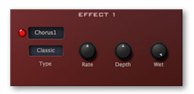 3 x analogue chorus, 2 x analogue phaser, plate reverb, stereo analogue delay, rotary speaker emulations...