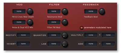 There are also several modulation options here that aren't available in all the main panels (e.g. filter resonance, feedback).