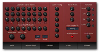 As well as detuning individual voices, a voice-specific offset is applied to cutoff, envelope times, pulse width and glide.