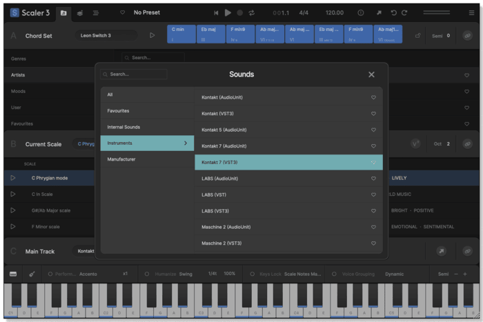 Load your favourite third-party instrument and effect plugins directly onto Chord Tracks and MIDI Lanes, with full support for both MIDI and audio effects. Seamlessly integrate your sounds and expand Scaler 3's creative potential within your workflow.