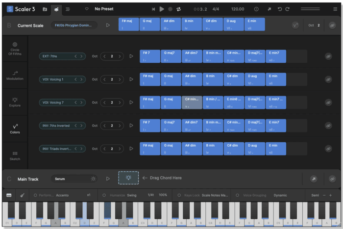 - Experiment with Voice Grouping to keep your chords within a certain range or apply drop voicings, guitar voicing and more.