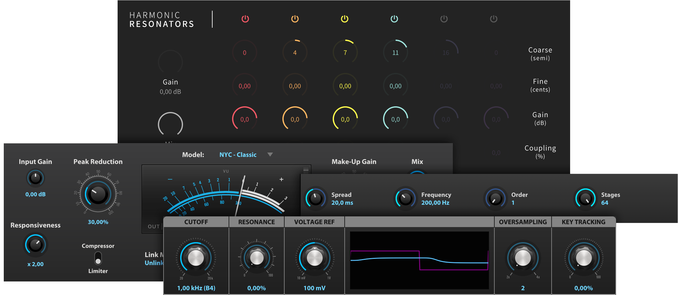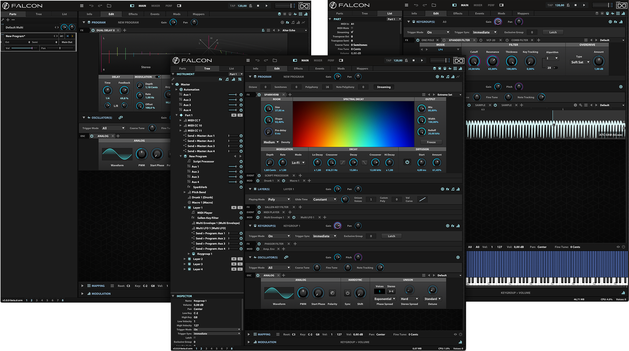 4 new effects deliver powerful creative possibilities within Falcon. Explore Opal, our advanced physically-modeled optical-compressor, Ladder Filter, our take on the classic East Coast filter, Harmonic Resonator, a signal-based resonator bank effect, and Dispersor, a unique transient shaper with variable spread, frequency, order, and stages.