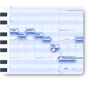 The Piano Roll shows the melodic content of your song and lets you pick the notes that you can use for transcription. Results can be played back and exported as MIDI to your DAW or notation software.