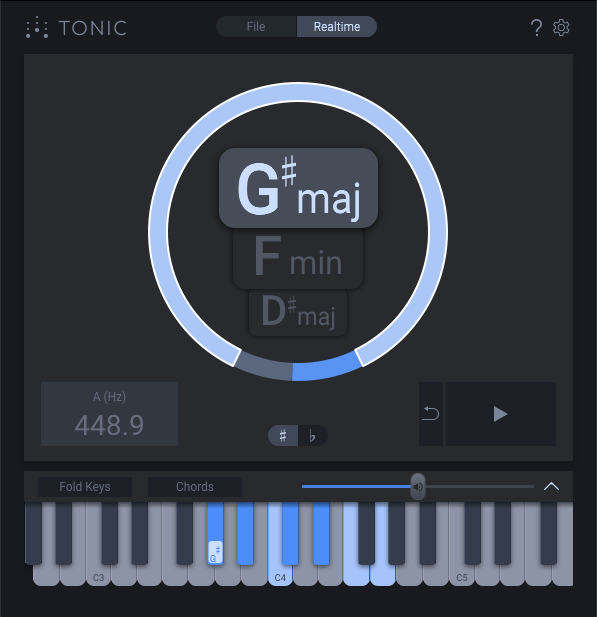 Sometimes more than one key can fit the audio—see and compare multiple possibilities with TONIC which shows 3 keys listed by probability.
