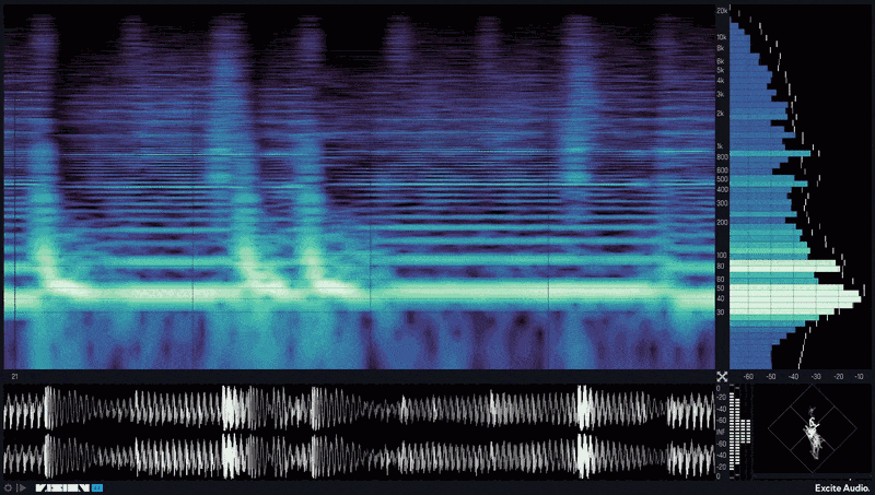 As well as the spectrogram and bar graph, VISION 4X features a waveform analyser that enables you to carefully inspect your sound source. Alongside the plugin's other visualisers, you can use the waveform analyser to magnify soundwaves and gain valuable pitch, volume and timing information, with an intuitive colour-coded display.